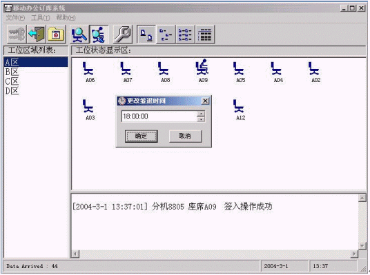 移動(dòng)辦公訂席系統(tǒng)操作臺(tái)的操作主要包括簽入、簽退、改變簽退時(shí)間三個(gè)方面: