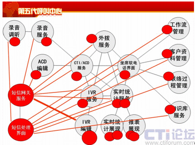 需要保存記錄的,需要做質(zhì)量管理的,大家需要把這個(gè)東西保存起來,以便于考核座席,這時(shí)候電話錄音的服務(wù)需要改動(dòng),座席質(zhì)量管理的界面需要改動(dòng),因?yàn)橐郧肮芾斫缑媸锹犱浺舻,現(xiàn)在是需要看文本了。接著客戶資料管理也是需要嗎?當(dāng)然需要了,來一個(gè)短信以后,盡量把客戶資料能夠屏幕彈出,降低我們的服務(wù)時(shí)間,需要改進(jìn)。知識(shí)庫需要改動(dòng)嗎?需要,因?yàn)槲野l(fā)短信的時(shí)候,不可能每個(gè)字都敲進(jìn)去,需要從知識(shí)庫把這個(gè)信息拽出來,這時(shí)候需要知識(shí)庫的服務(wù)。工作流,通過短信也要進(jìn)行一些業(yè)務(wù)的處理。聯(lián)絡(luò)過程也需要管理。這時(shí)候戰(zhàn)略出來了,經(jīng)營者說了,我現(xiàn)在通過短信要做營銷了,我要外撥了,和外撥服務(wù)連接出來,還有經(jīng)營者的一些戰(zhàn)略,比如說對于一些比較高的客戶,優(yōu)先分配,降低等待時(shí)長。那么這個(gè)戰(zhàn)略還包括這些產(chǎn)品生命周期的管理,需要不同的服務(wù)方式,一樣也要通過編輯,策略可以自行調(diào)整。