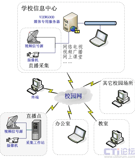 - 課堂教學(xué)實(shí)況直播:在公開課、示范課等現(xiàn)場架設(shè)平臺(tái)進(jìn)行直播,將課堂內(nèi)容通過內(nèi)部網(wǎng)可以讓所有人都能觀看,突破教室的物理局限性。