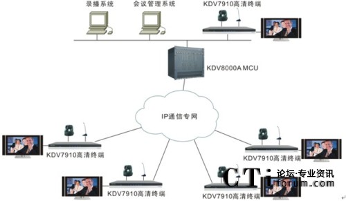 各會(huì)場(chǎng)配置KDV7910高清視頻終端,該終端是業(yè)內(nèi)第一款真正支持1080P的高清視頻會(huì)議終端,具有非凡的畫面質(zhì)量、音頻效果和卓越的雙流協(xié)作能力。各終端與中心點(diǎn)MCU之間通過全省財(cái)政IP通信專網(wǎng)相連。
