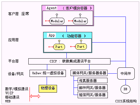 用CICP可以構(gòu)造高效率的集成語(yǔ)音、傳真、電郵、短信的企業(yè)集團(tuán)級(jí)應(yīng)用以及呼叫中心系統(tǒng)。