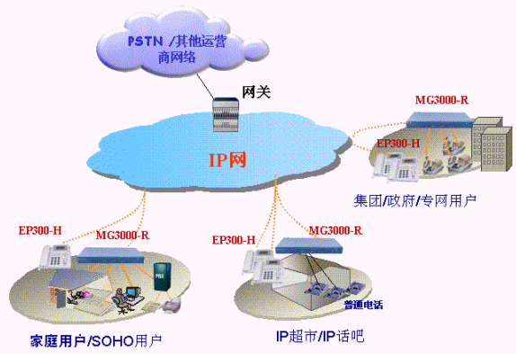 MG3000-R用戶駐地網(wǎng)關(guān)可以基于IP網(wǎng)絡(luò)提供優(yōu)質(zhì)的分組化語(yǔ)音流,使話音、傳真、數(shù)據(jù)在同一IP網(wǎng)絡(luò)中傳送。
