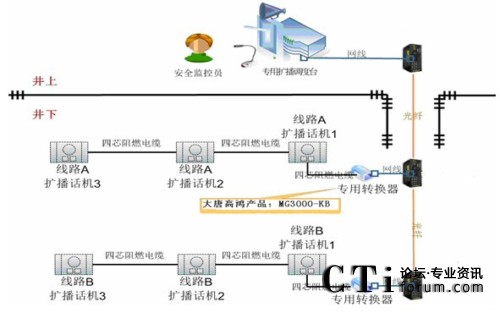 隨著防爆工業(yè)以太環(huán)網(wǎng)在煤炭企業(yè)應(yīng)用的成熟,大唐高鴻公司推出了基于IP的煤礦擴播通信系統(tǒng),可以完美的解決上面提到的問題。