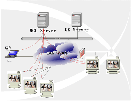 在企業(yè)內(nèi)部局域網(wǎng)與INTERNET連接處,會設(shè)置FIREWALL防火墻,而IP語音視頻會議采用的ITU H.323協(xié)議本身不具備穿越防火墻的特性,因此需要防火墻穿越軟件。
