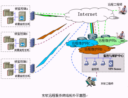 以東軟IT HELPDESK作為接入平臺,結(jié)合基于VPN的遠(yuǎn)程監(jiān)控、遠(yuǎn)程維護(hù)技術(shù),遵照ITIL流程,為客戶提供及時、優(yōu)質(zhì)的服務(wù),達(dá)到降低服務(wù)成本、提高服務(wù)效率、改善客戶滿意度的目的。
