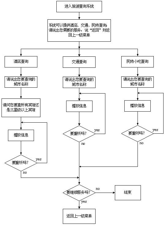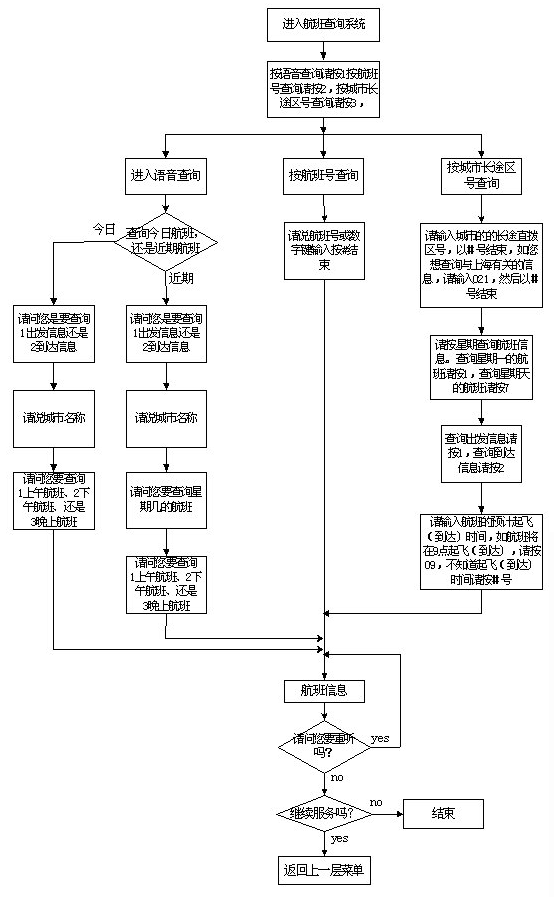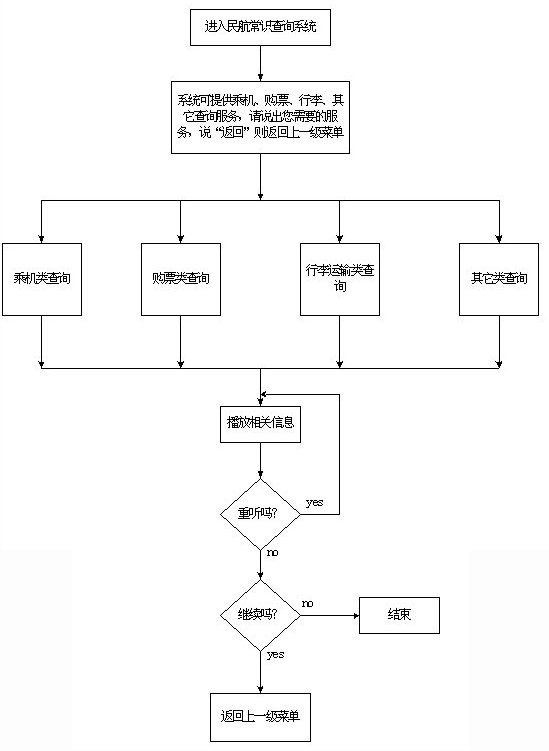 該系統(tǒng)主要采用語音技術(shù)實現(xiàn)航班信息查詢,系統(tǒng)的主業(yè)務(wù)流程如圖一至五示。