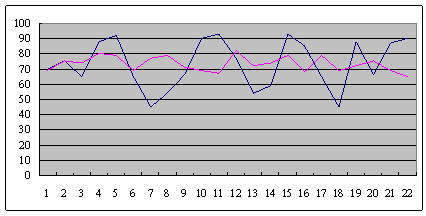 從平均數(shù)的分析方法來看,兩個(gè)呼叫中心這段時(shí)間的平均服務(wù)水平都是一樣的,都是73,但從方差的角度來看,這兩個(gè)呼叫中心內(nèi)部的管理,卻是非常不一樣的,兩條線的方差就是明顯不一樣(或是說標(biāo)準(zhǔn)差)。