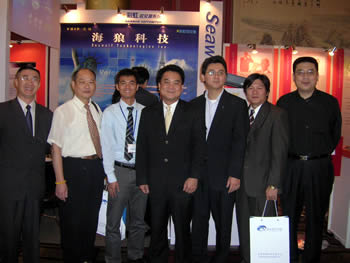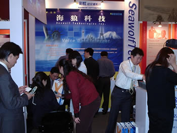 2005年5月18日在北京長城飯店召開的《2005中國IP語音網(wǎng)絡、軟交換及SIP研討會暨展覽會》上,海狼科技展臺前人頭攢動,很多商家對海浪科技技術和產(chǎn)品的表現(xiàn)感到相當滿意,并有新加坡、臺灣客戶現(xiàn)場購買產(chǎn)品。