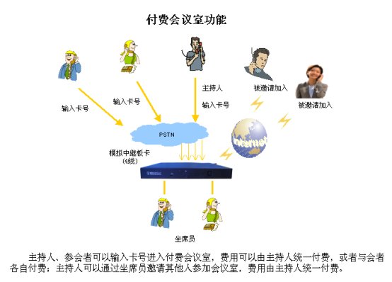 IPPBX的付費(fèi)會(huì)議室適合虛擬運(yùn)營商或者系統(tǒng)集成商,能為企業(yè)提供付費(fèi)會(huì)議室的專業(yè)服務(wù)。適用于解決企業(yè)的商務(wù)問題的快速?zèng)Q議,公司例會(huì)的定期召開,突發(fā)問題的快速處理,以及企業(yè)員工的全面培訓(xùn)。還可以廣泛應(yīng)用于行政會(huì)議、遠(yuǎn)程教育、商務(wù)會(huì)談、遠(yuǎn)程醫(yī)療、應(yīng)急通信、聊天等方面,具有廣闊的市場前景。