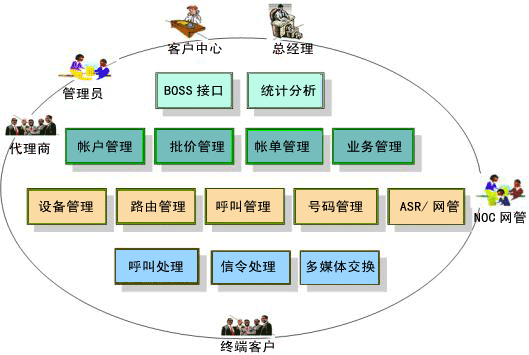 | 呼叫處理 | 設(shè)計(jì)原則: 處理接受終端用戶的呼叫請(qǐng)求。 代理向policy請(qǐng)求呼叫認(rèn)證系統(tǒng) 中每一個(gè)呼叫,負(fù)責(zé)上報(bào)給policy,并接受policy的指示。 功能: 設(shè)備管理:包括:設(shè)備信息管理、設(shè)備號(hào)碼管理、用戶的路由策略決定,統(tǒng)計(jì)分析、綜合查詢等等。 路由管理:為管理者全方位地管理系統(tǒng)擁有的路由資源,并對(duì)這些資源進(jìn)行開發(fā)提供決策支持。如為不同的客戶不同的要求,提供最適合的路由組合。 呼叫管理:監(jiān)控系統(tǒng)現(xiàn)在正在進(jìn)行的通話,讓管理者實(shí)時(shí)了解系統(tǒng)當(dāng)前的業(yè)務(wù)狀況。 ASR統(tǒng)計(jì):讓管理員實(shí)時(shí)了解系統(tǒng)的近一段時(shí)間的各類用戶,各路由的接通率,平均通話時(shí)長等。 網(wǎng)管:提供管理員管理每個(gè)設(shè)備的信息,并提供遠(yuǎn)程登錄管理到Internet上任何注冊(cè)到系統(tǒng)上的設(shè)備。 帳戶管理:管理系統(tǒng)中的每一個(gè)帳戶,支持多級(jí)的帳戶管理。上一級(jí)可以依據(jù)權(quán)限對(duì)下一級(jí)進(jìn)行管理。 批價(jià)管理:為各種帳戶提供與其相適應(yīng)的價(jià)格策略,以最低的成本最有效地激勵(lì)客戶。如定制打折,套餐等不同的定價(jià)策略. 帳單管理:為每個(gè)帳戶提供定時(shí)準(zhǔn)確帳單收據(jù)。可生成 Word、Excel、txt 等不同格式的帳單明細(xì)報(bào)表和統(tǒng)計(jì)報(bào)表。 業(yè)務(wù)管理:為每個(gè)用戶提供各種不同用戶所需要的業(yè)務(wù),并能快速的提供新的業(yè)務(wù)。如呼叫轉(zhuǎn)移,呼叫等待等業(yè)務(wù)。 |