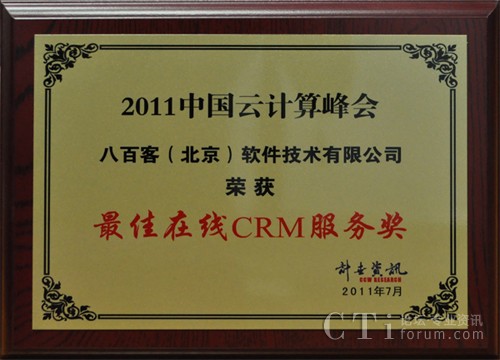 云計(jì)算峰會(huì):八百客榮膺“最佳在線CRM服務(wù)獎(jiǎng)”