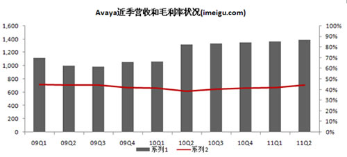2008、2009、2010財年Avaya總營收分別為49.23億美元、41.50億美元、50.60億美元,2009財年營收受宏觀經(jīng)濟(金融海嘯)因素影像而出現(xiàn)15.7%的下降,2010財年Avaya公司收購原北電的企業(yè)通信部門(NES),受此合并報表影響和經(jīng)濟復蘇因素,2010財年營收相比2009財年增長21.9%。