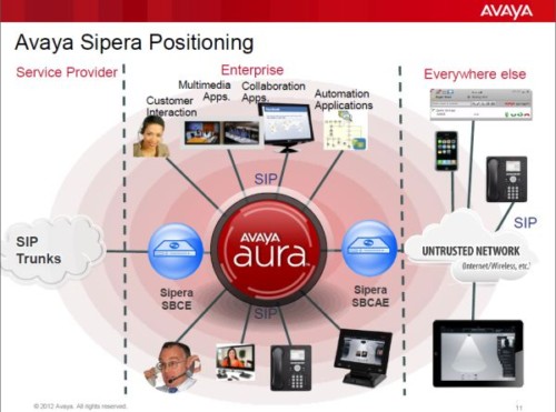 收購Sipera,Avaya獲得了適用于會話啟動協(xié)議(SIP)中繼的企業(yè)級會話邊界控制技術(shù),從而增強Avaya統(tǒng)一通信產(chǎn)品線的實力,并為客戶和渠道合作伙伴提供更大的靈活性,幫助他們實現(xiàn)各種安全功能進而創(chuàng)造商業(yè)價值。Sipera開放的、基于標(biāo)準(zhǔn)的解決方案適用于Avaya和非Avaya網(wǎng)絡(luò)。Sipera解決方案與Avaya Aura整合后,將能為客戶提供安全的VoIP、SIP中繼、視頻會議、基于云的通信、即時通信以及協(xié)作工具,使客戶能隨時隨地為使用企業(yè)級或消費類設(shè)備的員工提供服務(wù)。