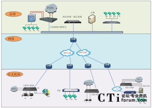 位于不同VPN網(wǎng)絡(luò)的分支機構(gòu)統(tǒng)一接入X6系統(tǒng)進行交換轉(zhuǎn)發(fā)。