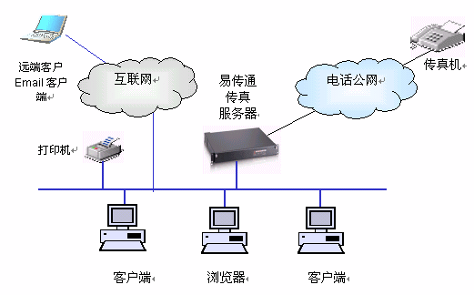 易傳通 網(wǎng)絡(luò)傳真服務(wù)器是基于網(wǎng)絡(luò)的瀏覽器/服務(wù)器與客戶端/服務(wù)器(B/S 與C/S)設(shè)計(jì)的,它采用了易傳通 專業(yè)的系統(tǒng)設(shè)計(jì),包括國家驗(yàn)證的專業(yè)傳真軟件系統(tǒng),配上專用的硬件,一體化設(shè)計(jì),只需接上網(wǎng)線、電話線,電源,即可使用,用戶無需添加任何其他設(shè)備,即可讓您享受網(wǎng)絡(luò)傳真帶來的方便、安全、快捷。