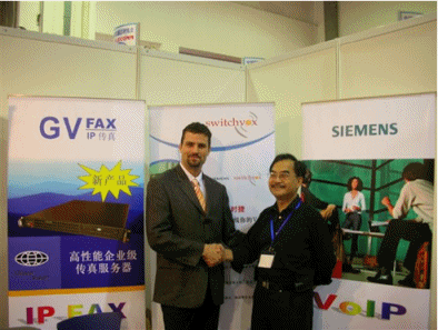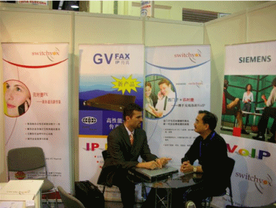 美國訊時捷科技公司作為IP-PBX專業(yè)提供商于2006年5月23-26日參加了最具權(quán)威的2006中國國際信息通信展覽會,在上海光大會展中心的B019展位展示了Switchvox IPX與戰(zhàn)略合作伙伴Siemens配套IP終端話機。此次展會,我們還推出了企業(yè)級新一代的IP傳真服務器GV-FAX,此次大會吸引了眾多全國的渠道代表、廠商、集成商和媒體參加,對產(chǎn)品感興趣的來賓絡繹不絕。