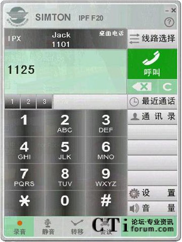 圖:Simton IPF F20型電腦軟電話(huà)操作界面