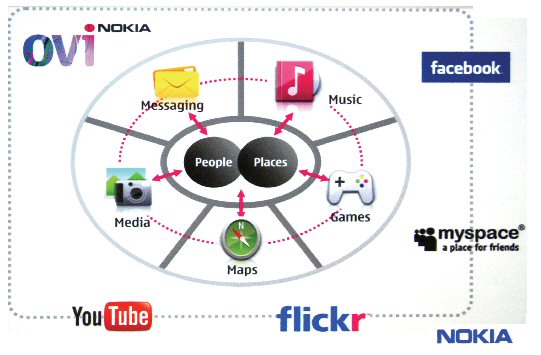 圍繞基于位置的社區(qū)服務(Social Location)而建立,是Ovi商店的一大特色;谖恢玫纳鐓^(qū)服務,意味著這種服務是建立在諸如“你在哪兒”、
