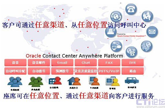 Oracle Contact Center Anywhere是甲骨文在收購Telephony@Work公司之后獲得的,是一款功能全面的多媒體IP聯(lián)絡中心解決方案。甲骨文稱它可以幫助運營商和企業(yè)用戶降低呼叫中心運營成本。