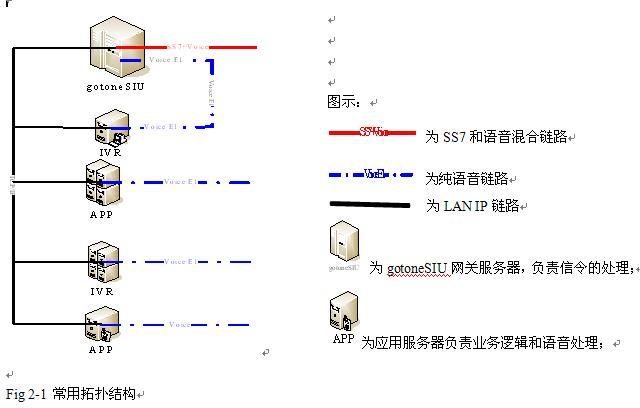 陽江電信跟系統(tǒng)集成商根據(jù)實(shí)際情況和專家評(píng)審團(tuán)的評(píng)定最后選擇了高性價(jià)比的gotoneSIU PCCS6,2E1的SS7網(wǎng)關(guān)系統(tǒng),經(jīng)過我們工程師的指導(dǎo),3天內(nèi)系統(tǒng)便集成完成。系統(tǒng)采用了業(yè)界免費(fèi)穩(wěn)定的Redhat Linux9.0作為操作系統(tǒng),IPC6102U工控機(jī)作為系統(tǒng)的計(jì)算平臺(tái),采用7X24 小時(shí)不間斷運(yùn)行設(shè)計(jì)思想。系統(tǒng)的拓?fù)浣Y(jié)構(gòu)如下: