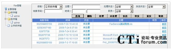 打開(kāi)瀏覽器,輸入WebFax管理網(wǎng)站的地址,登陸,然后通過(guò)這個(gè)網(wǎng)站,查看收發(fā)傳真的狀態(tài),及接收傳真的圖像?梢赃M(jìn)行查詢、下載、發(fā)送、轉(zhuǎn)發(fā)、重發(fā)和刪除傳真。