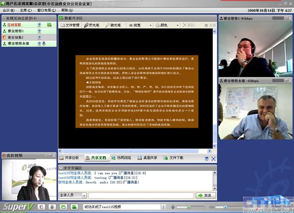 CTI論壇(ctiforum)05月19日消息: 自08年攜手視維Super-V視頻會議以來,中石油雅安分公司銷售部的日常工作會議高效及時地開展,尤其是在5.12四川大地震后,工作不但沒有中斷,而且足不出戶就可以給上級領導匯報工作,與同事交流營銷心得。而在以前,只能通過電話或者郵件,甚至長途跋涉聚集到一個地方舉行會議,既浪費時間又增加營銷成本。這是繼中國重汽、新加坡協(xié)美集團等跨國集團公司倡導信息時代新營銷主義,實現(xiàn)高效運營的又一典型案例應用。