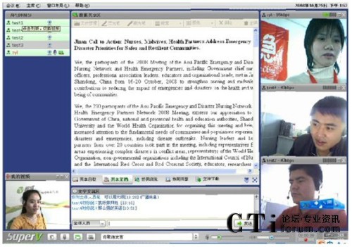 CTI論壇(ctiforum)10月16日消息:近日,世衛(wèi)組織用視維Super-V視頻會(huì)議軟件召開亞太地區(qū)會(huì)議,討論第三屆APEDNN的各項(xiàng)議題。參加會(huì)議的成員主要有中國(guó)、菲律賓、新加坡、馬來西亞、緬甸、日本、泰國(guó)等幾十個(gè)國(guó)家和地區(qū)的代表。