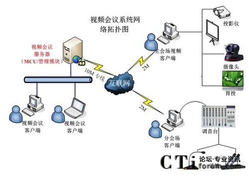 根據(jù)河南送變電建設(shè)公司的網(wǎng)絡(luò)現(xiàn)狀和現(xiàn)有的IT硬件資源以及各級(jí)各部門(mén)間的溝通協(xié)作需要,視維設(shè)計(jì)了一套可行的視頻會(huì)議系統(tǒng)解決方案,其網(wǎng)絡(luò)拓?fù)鋱D如下: