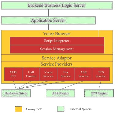 聲通技術(shù)的Amany IVR是集流程編輯環(huán)境、語法解析器和執(zhí)行平臺為一體的通用語音平臺,在這基礎(chǔ)上增加了CTI中間件和TAPI/WAV等方面的技術(shù)支持,使它不僅能作為一個(gè)獨(dú)立的語音應(yīng)答系統(tǒng)使用,而且可以作為呼叫中心理想的IVR服務(wù)器,并且可以作為外撥服務(wù)器、傳真服務(wù)器、語音門戶網(wǎng)站系統(tǒng)使用,是一個(gè)具有國際先進(jìn)水平的綜合性語音平臺;所有的可選功能模塊通過獨(dú)有的Plug-in技術(shù)可實(shí)現(xiàn)功能模塊動態(tài)卸載,使客戶可以挑選自己需要的功能模塊,在將來需要的時(shí)候在配置相應(yīng)的功能模塊,使客戶成本大大降低,同可以保證將來系統(tǒng)平滑升級,使用擁有更多的選擇。
