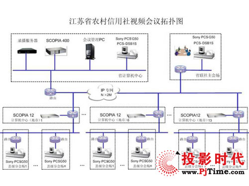 對此,江蘇省農(nóng)村信用聯(lián)社進行遠程辦公的大膽改革,由上海索高計算機科技發(fā)展有限公司為其進行實地調(diào)研、設(shè)計方案,與于2008年采用SONY視頻會議系統(tǒng),基于IP線路進行互通,由省---地市二級組網(wǎng)方式,實施全省各市、縣級遠程視頻會議辦公電子化。,以實現(xiàn)提高服務水平和綜合實力的大跨越。