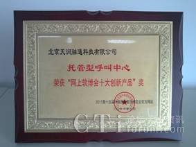 為了樹立軟件行業(yè)創(chuàng)新業(yè)務的典范,分享不同企業(yè)的軟件發(fā)展成果,本次大會通過官網(wǎng)的產(chǎn)品展示,用戶體驗投票和軟博會專家顧問團評選的方式,評選出了的“軟博會十大創(chuàng)新產(chǎn)品”獎。北京天潤融通科技有限公司的“托管型呼叫中心服務”,以其在呼叫中心鄰域內(nèi)創(chuàng)新的saas業(yè)務模式,簡單、易用、可依靠的服務特色,獲此殊榮。