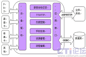 CTI服務(wù)器是整個系統(tǒng)的核心,通過內(nèi)置電話語音/傳真卡,接入PSTN電話網(wǎng)。該服務(wù)器可作為一個相對獨立的系統(tǒng)單獨運(yùn)行,也可以通過企業(yè)局域網(wǎng)與企業(yè)的業(yè)務(wù)系統(tǒng)連接。