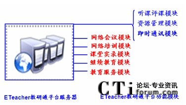 紅杉樹的“教研通”產(chǎn)品是紅杉樹根據(jù)客戶的具體情況,在自身產(chǎn)品“紅杉通”的基礎(chǔ)上,定制擴(kuò)展而來,是一套適合于教育城域網(wǎng)的,集即時(shí)通訊、網(wǎng)絡(luò)會(huì)議、網(wǎng)絡(luò)培訓(xùn)、課堂實(shí)錄、聽課評(píng)課、資源管理、繼續(xù)教育、教育服務(wù)等功能于一體的綜合性教育應(yīng)用系統(tǒng)(包括服務(wù)器及軟件平臺(tái))。
