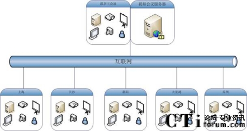 如圖,深圳南山地產(chǎn)視頻會議系統(tǒng)應(yīng)用規(guī)模為6個點,包括深圳、上海、長沙、惠陽、大亞灣、蘇州。服務(wù)器部署在深圳用來保證香港和內(nèi)地的鏈接效果,服務(wù)器出口帶寬為3M共享,各分會場通過互聯(lián)網(wǎng)訪問服務(wù)器。在這個網(wǎng)絡(luò)平臺上,紅杉樹網(wǎng)絡(luò)會議所提供的高質(zhì)量音視頻圖像、方便易用的文檔、文件共享數(shù)據(jù)功能,使得南山地產(chǎn)能夠在這個平臺上進(jìn)行從桌面討論到會議室正式會議等各種規(guī)模的應(yīng)用。在這個平臺上,除了進(jìn)行日常例會、業(yè)務(wù)交流等常見的應(yīng)用之外,業(yè)務(wù)培訓(xùn)、異地招聘等也是經(jīng)常進(jìn)行的內(nèi)容。業(yè)務(wù)人員利用數(shù)據(jù)功能,節(jié)約了以前培訓(xùn)所花費的大量精力和時間,為新項目迅速占領(lǐng)市場掌握了主動。