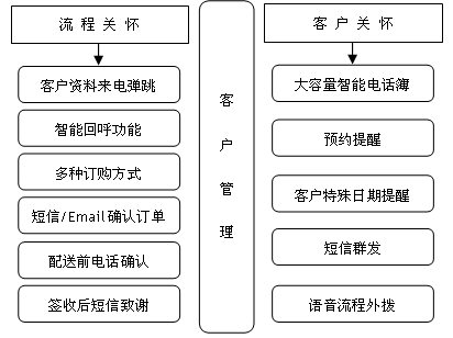 可與企業(yè)既有的800或400電話相結(jié)合,包含1至16個(gè)客服人員坐席設(shè)置,主要處理實(shí)時(shí)的產(chǎn)品售前售后咨詢、電話訂單受理等呼入類業(yè)務(wù),也能滿足以外撥為主的客戶關(guān)懷需求;同時(shí),客服人員能夠通過系統(tǒng)隨時(shí)了解各種商品庫(kù)存情況,以便對(duì)網(wǎng)上交易提供及時(shí)有效的服務(wù)。來電彈跳客戶資料中必須顯示出客戶的歷史消費(fèi)詳細(xì)信息,以及正在進(jìn)行中的交易詳情。