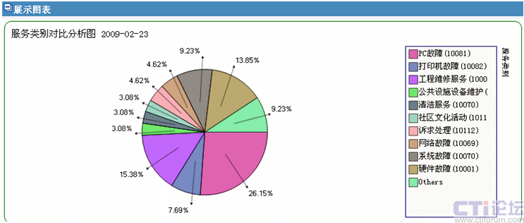 3. 服務(wù)類比:系統(tǒng)自動(dòng)生成月度、年度的服務(wù)類比。管理者通過服務(wù)類比圖可以清晰的看到那項(xiàng)服務(wù)發(fā)生故障的可能性是最高的,對(duì)下一步管理提出了科學(xué)依據(jù);