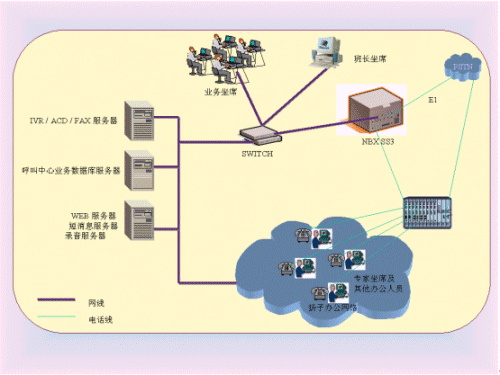 NBX SS3 網(wǎng)絡(luò)電話(huà)交換機(jī)作為基礎(chǔ)通信平臺(tái),由北大方正電子技術(shù)有限公司在北京網(wǎng)音公司呼叫中心中間件進(jìn)行集成開(kāi)發(fā),建立CTI,ACD、IVR、FAX、TTS及其應(yīng)用服務(wù),集成現(xiàn)有的WEB、mail、短消息系統(tǒng),建立統(tǒng)一消息平臺(tái),新建和利用各業(yè)務(wù)數(shù)據(jù)庫(kù),設(shè)計(jì)業(yè)務(wù)坐席及客戶(hù)端軟件。