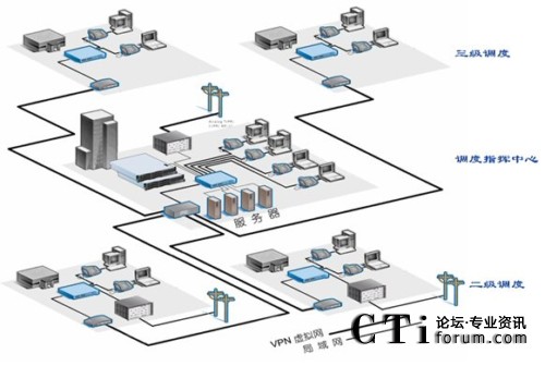 根據(jù)實際情況,總部可以部署調(diào)度控制中心,遠端部署二級調(diào)度和三級調(diào)度終端,PSTN網(wǎng)關(guān)可以根據(jù)實際需要部署在任一點位。