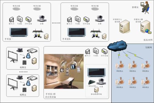 迅流高清手術(shù)示教系統(tǒng)依托專項(xiàng)網(wǎng)絡(luò),采用硬件MCU組建視頻會議系統(tǒng)服務(wù)器,專業(yè)直播點(diǎn)播服務(wù)器組件基于互聯(lián)網(wǎng)的直播和基于用戶要求的點(diǎn)播編輯系統(tǒng),觀摩室和手術(shù)室采用視頻終端、高清采集終端、移動高清終端等眾多高清設(shè)備共同組成高清交互展示平臺。