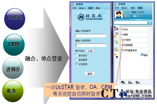 UcSTAR與第三方系統(tǒng)可以實現(xiàn)三種不同深度的整合:單點(diǎn)登錄、統(tǒng)一消息、流程鏈接。