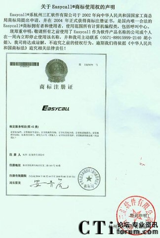 杭州三匯軟件Easycall商標使用權(quán)的聲明