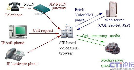 kb/s),而不考慮語音合成速度。初始的VoiceXML頁面地址可以預先配置在瀏覽器中,或者編碼到SIP請求。例如,如果主叫方撥打sip:dialog.vxml.http%3a//dialogs.server.com/script32.vxml@vxmlservers.com,那么該呼叫將到達運行在vxmlservers.com上的瀏覽器,然后從script32.vxml取得初始VoiceXML頁面。