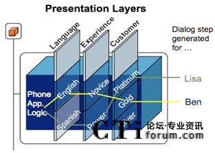 而統(tǒng)一部署特性則在語音和移動互聯(lián)網兩種訪問渠道上保證了這種操作界面的一致,如圖: