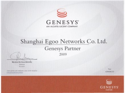 上海易谷與Genesys公司雙方在2009年達(dá)成大中華區(qū)長期合作伙伴關(guān)系,開展廣泛、深入的合作。上海易谷將憑借其深厚的技術(shù)背景、優(yōu)質(zhì)的服務(wù)能力,積極推動(dòng)世界第一的CTI及SIP新一代呼叫中心基礎(chǔ)平臺。為配合產(chǎn)品多樣化、專業(yè)服務(wù)的發(fā)展戰(zhàn)略,與