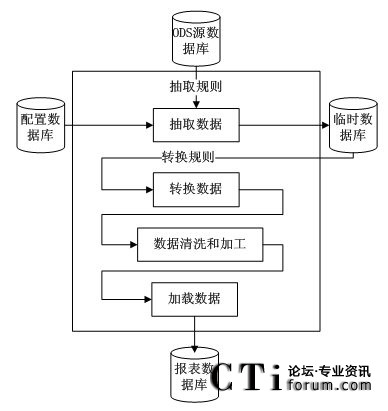 在ETL服務將抽取數(shù)據(jù)存儲到臨時數(shù)據(jù)庫后,再根據(jù)一定的轉(zhuǎn)換規(guī)則,對抽取的數(shù)據(jù)進行轉(zhuǎn)換。數(shù)據(jù)轉(zhuǎn)換完成后再對其進行一些必要的處理,清除那些不正確的,不完整的數(shù)據(jù),再對數(shù)據(jù)的格式等進行加工,最后加載到報表數(shù)據(jù)庫中。