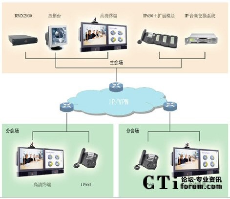 系統(tǒng)由Polycom IP650指揮電話(huà)以及擴(kuò)展模塊、Polycom IP550組成:系統(tǒng)采用分級(jí)部署,中心會(huì)場(chǎng)設(shè)置一部Polycom IP650指揮電話(huà)并根據(jù)分會(huì)場(chǎng)數(shù)量配置相應(yīng)的擴(kuò)展模塊,是整個(gè)系統(tǒng)的核心。負(fù)責(zé)調(diào)度系統(tǒng)的指揮工作, 每個(gè)會(huì)場(chǎng)分配一個(gè)專(zhuān)用的IP地址,終端設(shè)置一部Polycom IP550電話(huà), 在中心會(huì)場(chǎng)的指揮電話(huà)及擴(kuò)展模塊上設(shè)置每個(gè)分會(huì)場(chǎng)快速呼叫功能鍵,中心會(huì)場(chǎng)的管理人員只需按下IP650及擴(kuò)展模塊上的對(duì)應(yīng)于各分會(huì)場(chǎng)的快捷按鍵,即可迅速接通各個(gè)分會(huì)場(chǎng)。