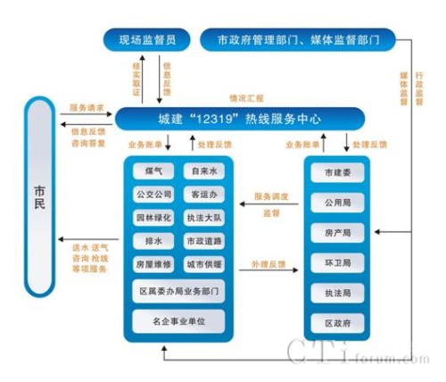 - 各城管系統(tǒng)都設(shè)立專(zhuān)門(mén)機(jī)構(gòu)直接與熱線中心聯(lián)系,即時(shí)處理服務(wù)中心轉(zhuǎn)來(lái)的各類(lèi)問(wèn)題,實(shí)現(xiàn)“市民→熱線中心→責(zé)任單位→市民”的閉路循環(huán),做到受理及時(shí)、反應(yīng)快速、處理到位, 使 12319 熱線成為密切政府與群眾關(guān)系、 創(chuàng)建行業(yè)服務(wù)品牌的一項(xiàng)重要舉措。
