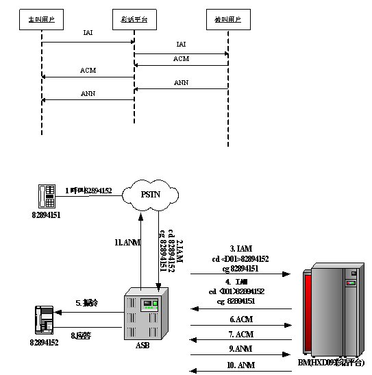 被叫彩話是指呼叫到達(dá)被叫方交換機時,被叫方交換機檢測被叫擁護(hù)是否設(shè)置彩話業(yè)務(wù),如果沒有甚至彩話業(yè)務(wù),則直接向被叫用戶發(fā)起呼叫,當(dāng)被叫用戶摘機應(yīng)答后將雙方連接起來通話;如果設(shè)置了彩話業(yè)務(wù),則被叫方交換機將做兩個動作:第一為向被叫用戶發(fā)起呼叫,第二為向彩話平臺發(fā)起呼叫,當(dāng)被叫用戶摘機應(yīng)答后,在被叫交換機上將產(chǎn)生一個會議,將主叫用戶、被叫用戶和彩話平臺加入到會議中。