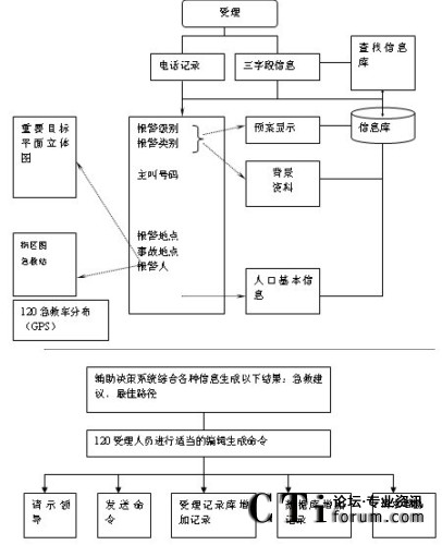 受理臺根據(jù)報警類別和報警地點等信息,判別是否是重點單位、重大事故等,如是則自動查找相關的數(shù)據(jù)庫,調出預存的急救方案,最后由120指揮長作出決策。