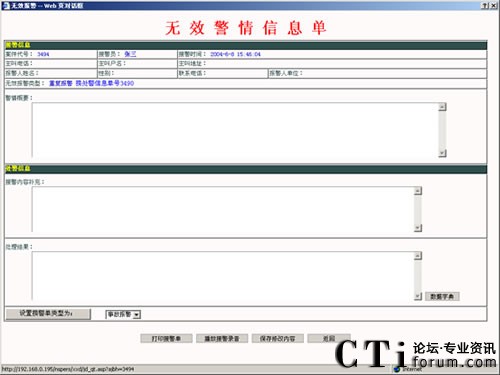 可以對該無效報(bào)警進(jìn)行維護(hù),可以將該無效警情設(shè)置為其他類型,對警情概要等信息進(jìn)行更改后點(diǎn)擊“保存修改內(nèi)容”按鈕更新數(shù)據(jù)庫。